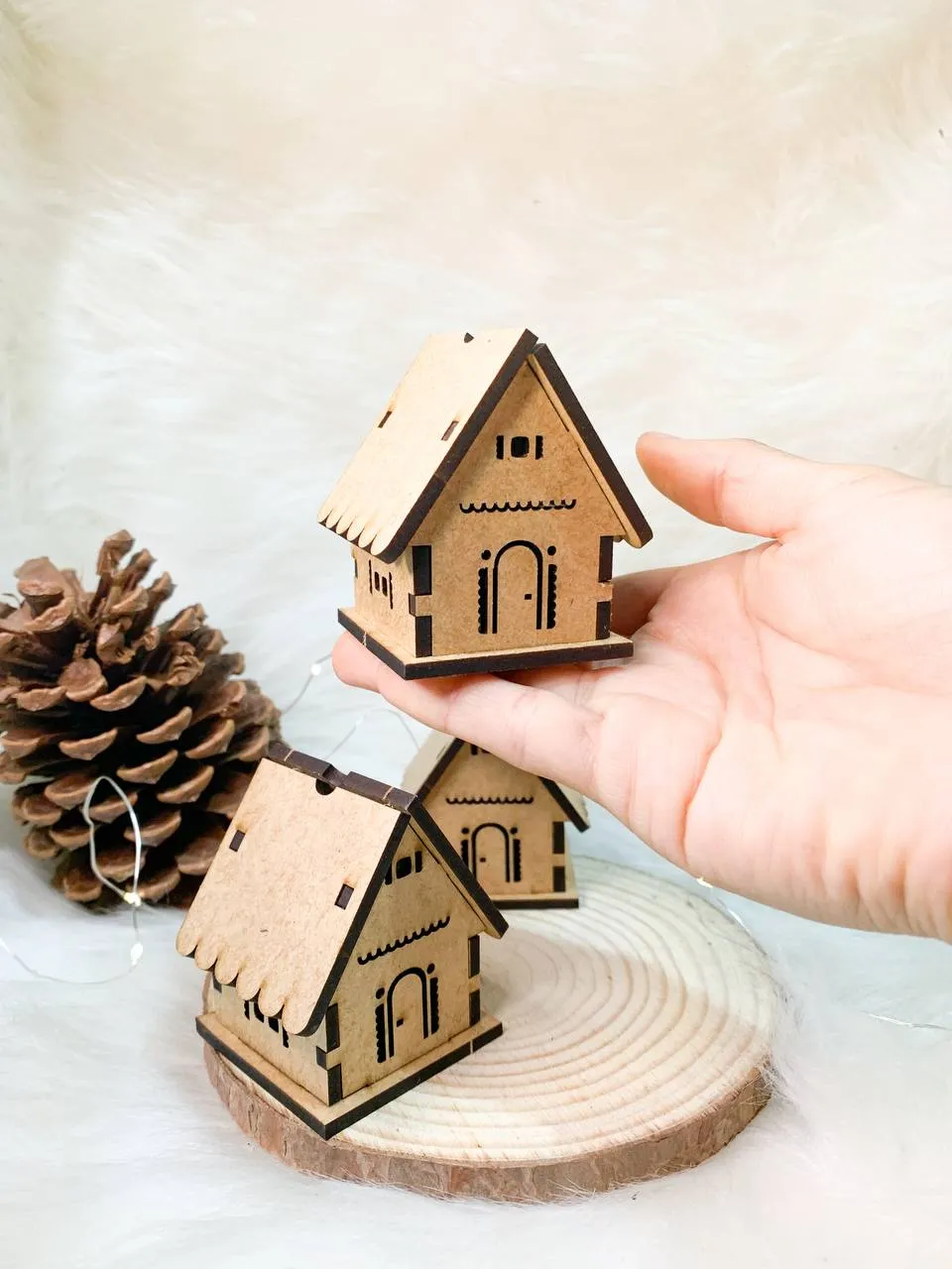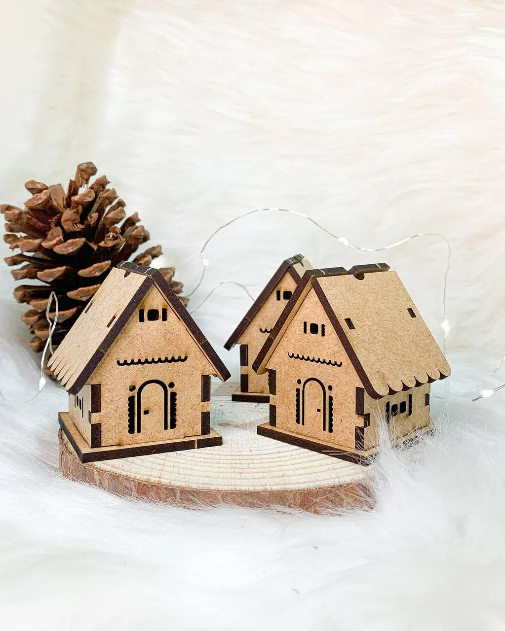 Transforme sua decoração de Natal com o <strong>Kit 10 Casinhas Natalinas em MDF 3mm</strong>. Cada peça é delicadamente cortada a laser, trazendo charme e aconchego para enfeitar sua árvore de Natal, pisca-pisca ou montar cenários decorativos. \n \nAs casinhas são leves, resistentes e prontas para personalizar com tinta, glitter ou permanecer em MDF cru para um estilo rústico e artesanal. \n<h3>Detalhes do Produto:</h3> \n<ul> \n <li><strong>Material:</strong> MDF 3mm</li> \n <li><strong>Quantidade:</strong> 10 casinhas</li> \n <li><strong>Tamanho individual:</strong> 4,5 cm x 5,5 cm cada</li> \n <li><strong>Acabamento:</strong> Corte a laser de alta precisão</li> \n</ul> \n<h3>Benefícios:</h3> \n<ul> \n <li>Enfeite artesanal único e sofisticado</li> \n <li>Ideal para árvore de Natal, guirlandas e pisca-pisca</li> \n <li>Pode ser pintado, customizado ou usado cru</li> \n <li>Decoração criativa para festas e ambientes</li> \n</ul> \nDê um toque especial e artesanal ao seu Natal com esse kit encantador de casinhas em MDF. \n \n<em> </em>